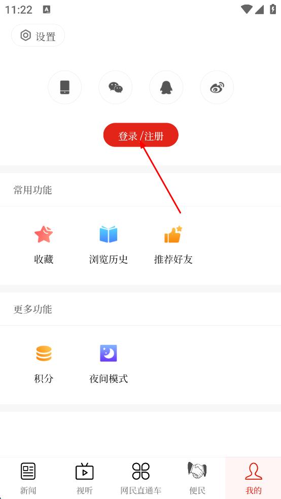 2、在个人中心页面,找到红色的“登录/注册”按钮,点击该按钮,进入登录页面。