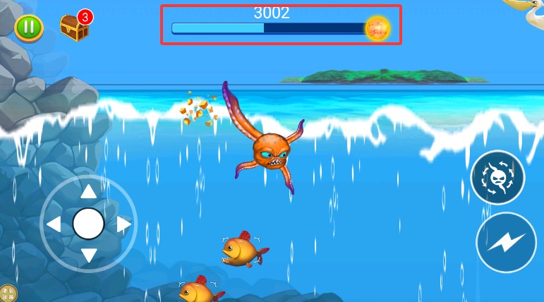 2、使用左侧虚拟摇杆控制移动方向,右侧攻击按钮可发动吞噬与进化技能。