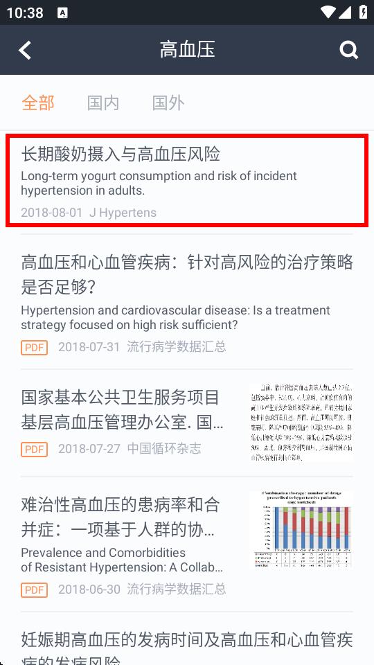 4、浏览高血压流病数据文献列表,点击目标文献即可查看详细内容。