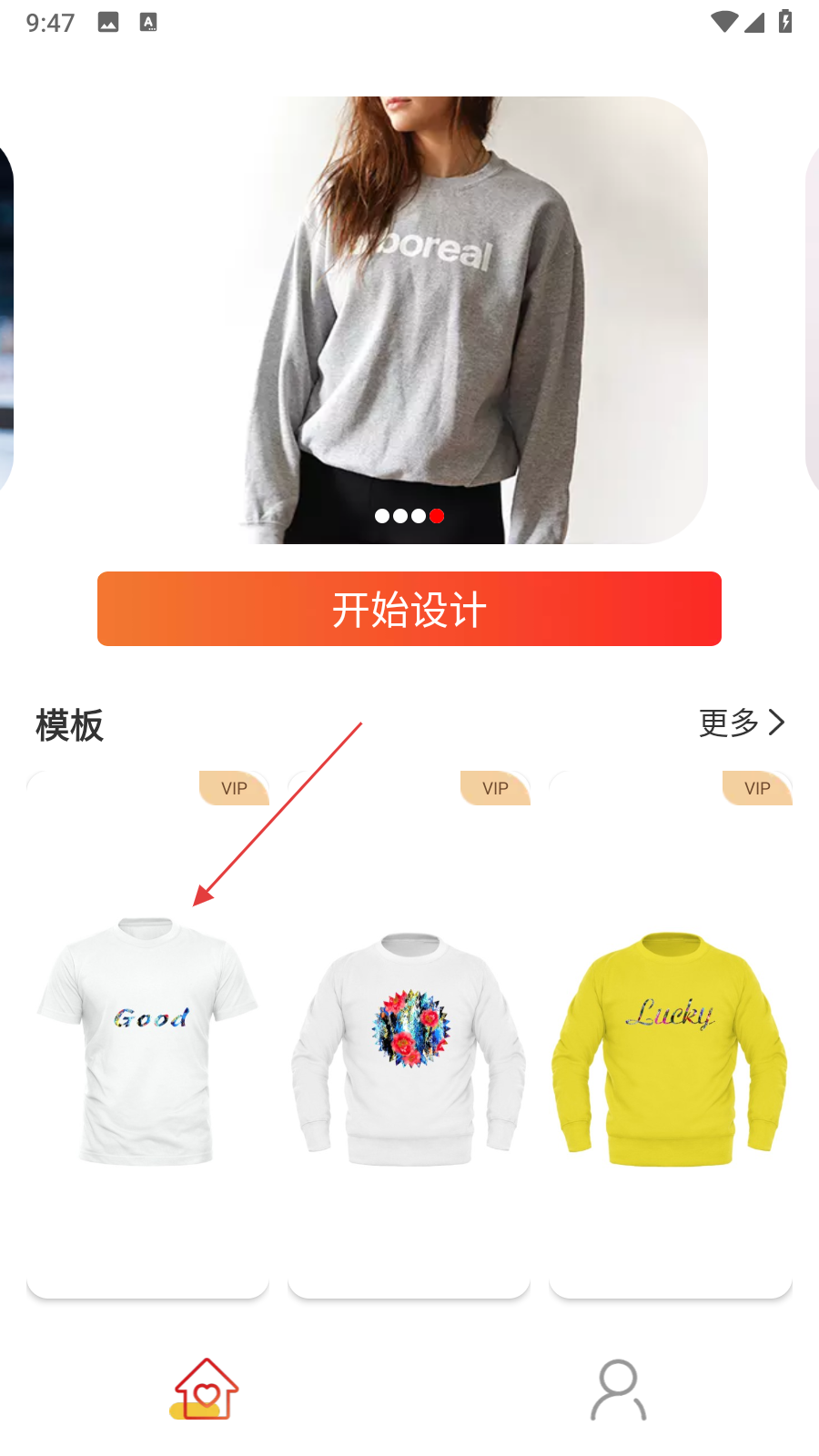 1、打开服装设计App,在首页中选择想要设计的服装模板,点击模板进入设计页面。