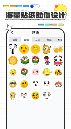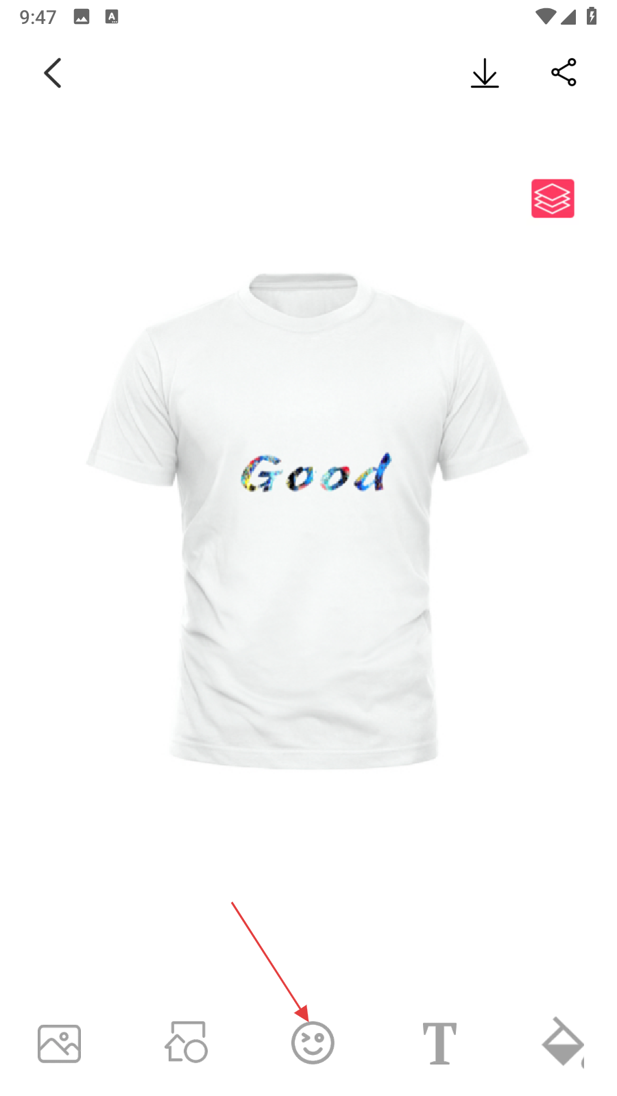 2、进入T恤设计界面后,点击底部的表情图标,打开贴纸选择页面。