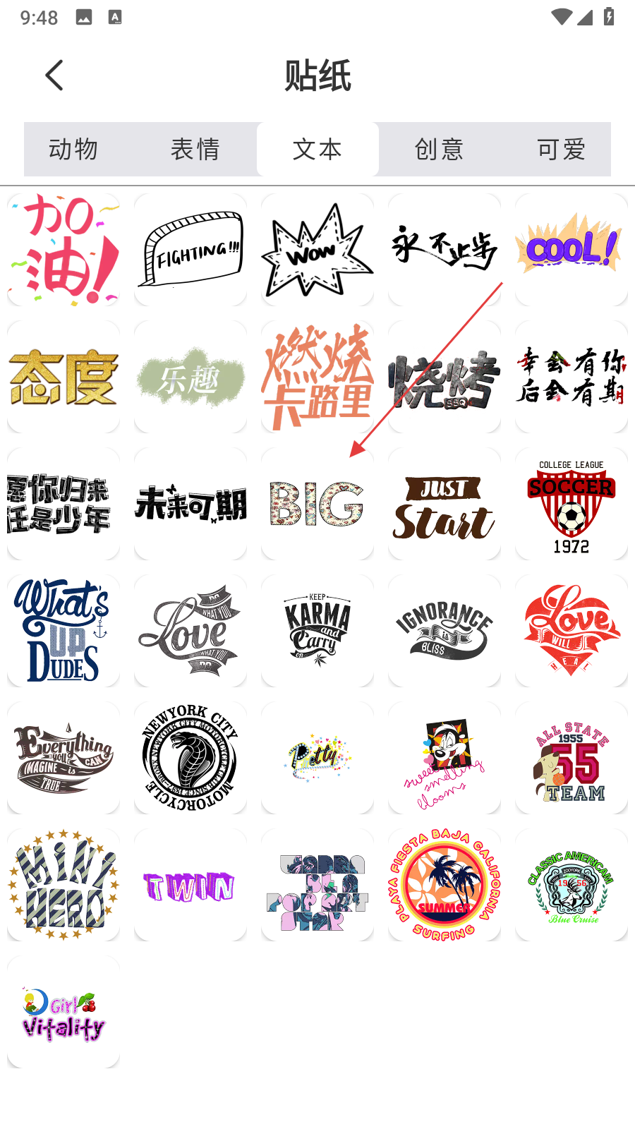 3、在贴纸选择页面中,挑选喜欢的贴纸,点击该贴纸将其添加到T恤上。