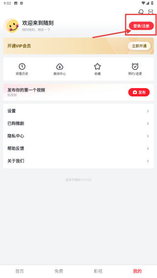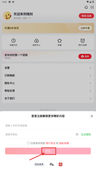 2、在个人中心,点击登录/注册按钮,触发登录方式选择弹窗。