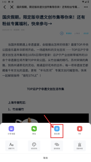 4、在分享选项中,点击发送圈选项,将该资讯分享到社交圈。