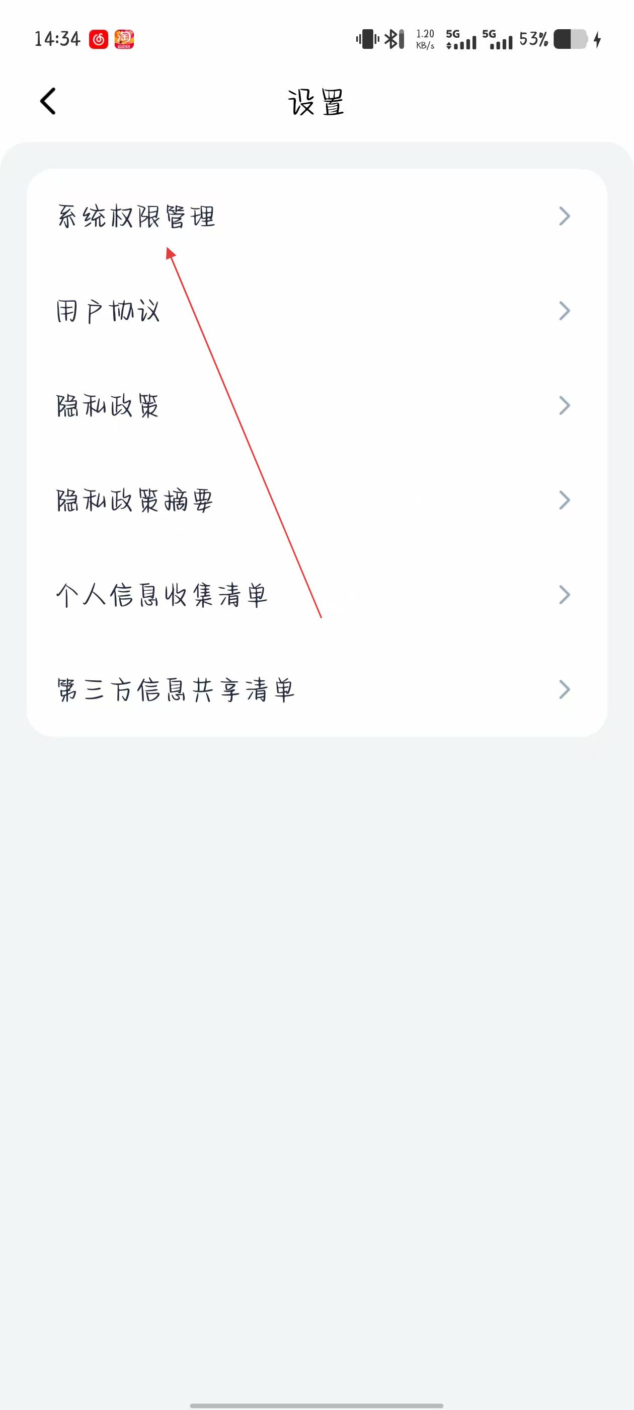 3、在设置界面中,点击系统权限管理选项,进入系统权限管理页面。