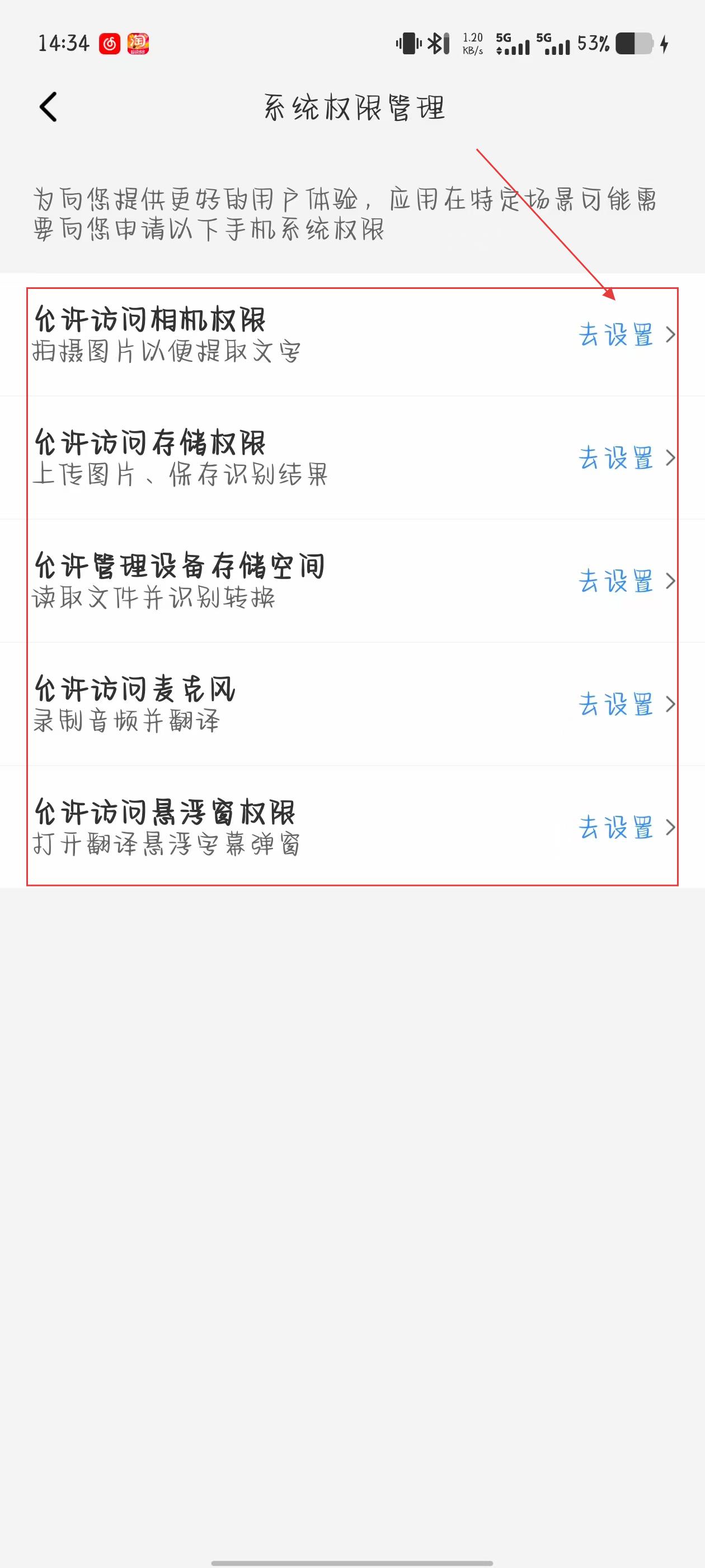 4、在系统权限管理页面,可看到多项权限,点击对应权限右侧的去设置。