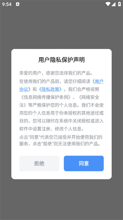 1、打开软件之后阅读隐私政策和用户协议,点击同意之后就能进入到软件;