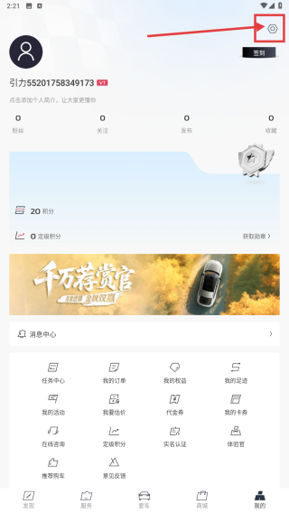 2、在个人中心,点击右上角设置图标,进入设置界面。