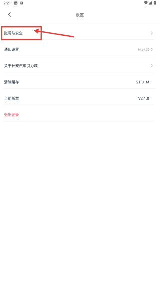 3、在设置页面,点击账号与安全选项,进入账号管理页。
