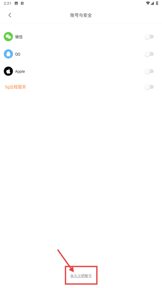 4、在账号与安全页面,点击永久注销账号按钮,发起账号注销操作。