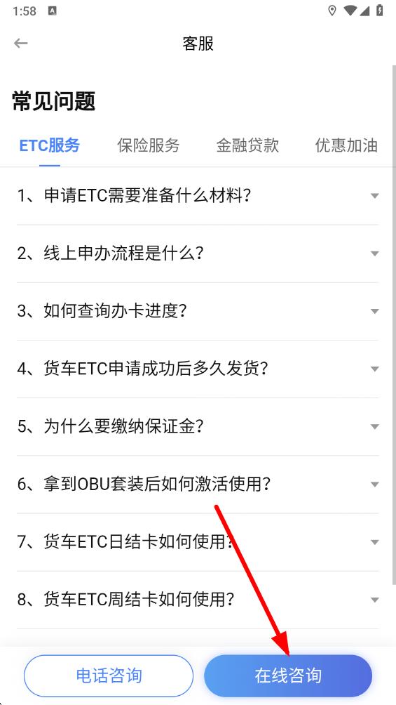 3、进入客服界面后,可以通过电话咨询客服,也可以点击下方的在线咨询按钮。