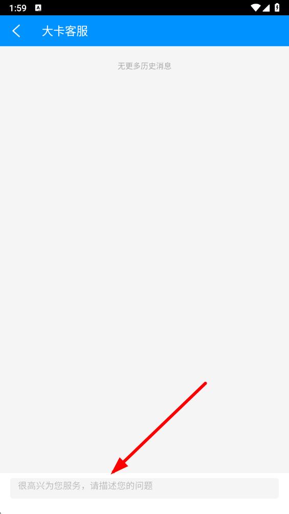 4、进入大卡客服聊天窗口,在输入框中输入您遇到的问题,然后发送消息,即可与客服进行沟通咨询。