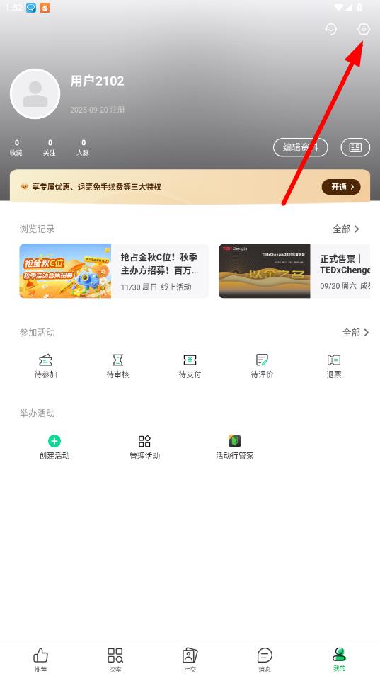 1、打开活动行APP,点击底部导航栏最右侧的我的进入个人页面。