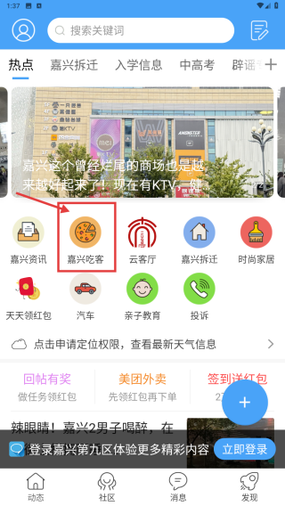1、打开本地生活应用,点击嘉兴吃客选项,进入嘉兴吃客板块。
