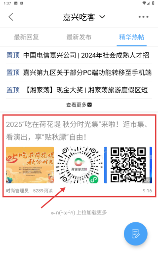 3、在精华热帖展示页面,点击2025吃在荷花堤-秋分时光集来啦!热帖,进入热帖详情页。