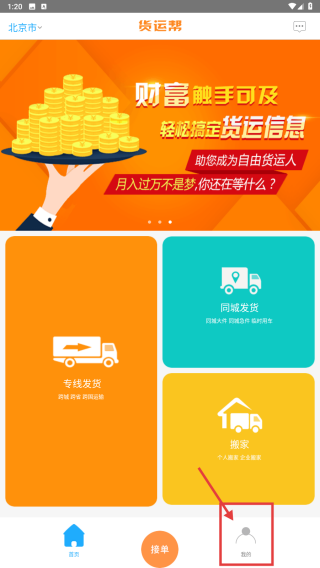 1、打开货运帮应用,点击底部我的选项,进入个人中心页面。