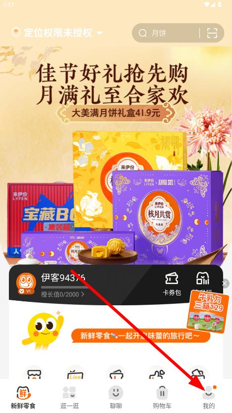 1、打开来伊份APP,点击底部我的选项,进入个人中心页面。