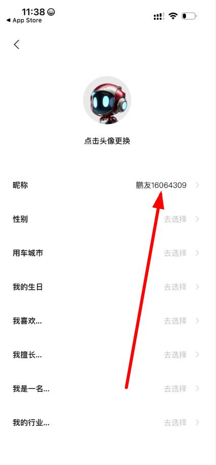 4、在个人资料编辑页面,找到昵称选项,点击昵称右侧区域即可进行昵称修改操作。