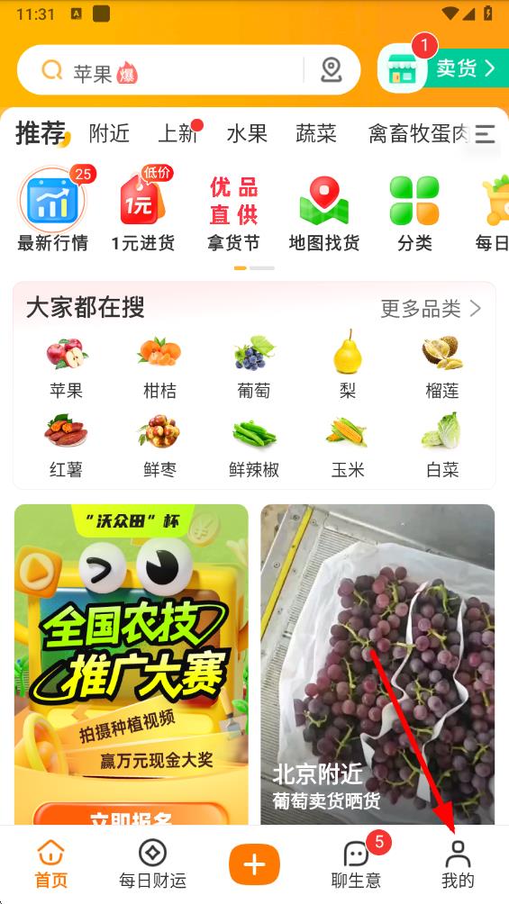 1、打开一亩田app,点击底部导航栏最右侧我的选项,进入个人相关界面。