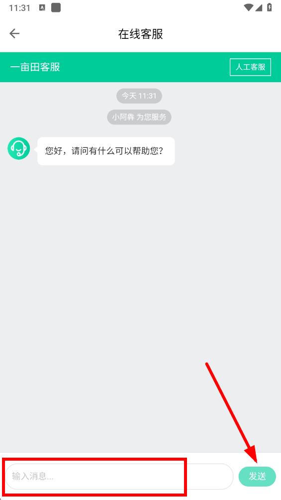 4、在线客服对话窗口下方的输入框内,输入你要咨询的内容,然后点击发送,即可与在线客服交流。