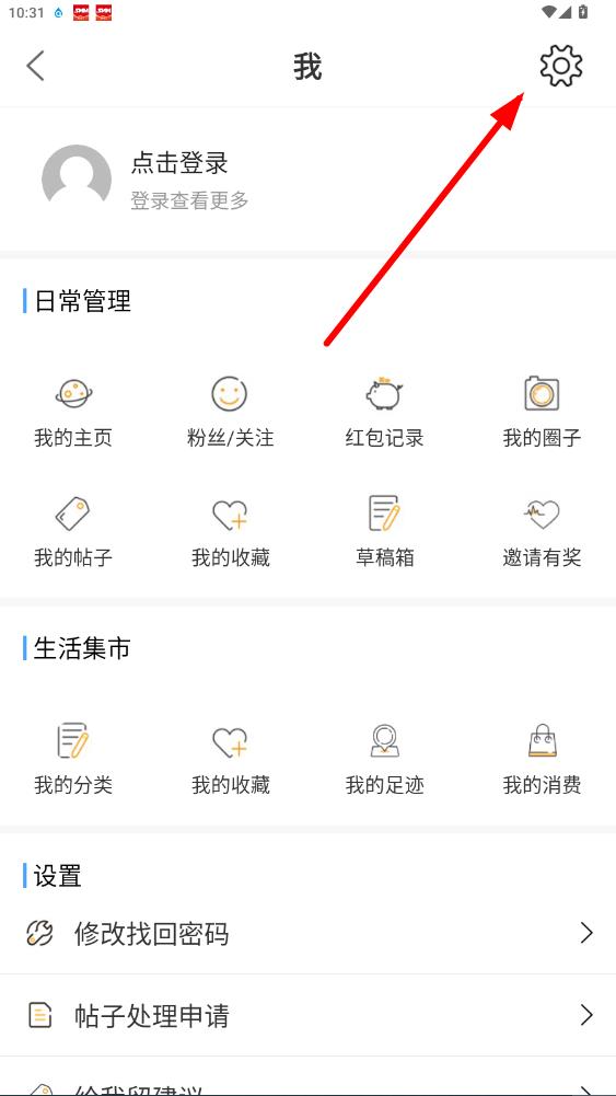 2、在个人页面中,点击右上角的设置齿轮图标,进入设置界面。