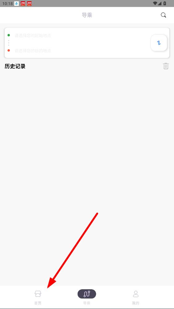 1、进入app点底部首页,可选起止点并查看历史记录。