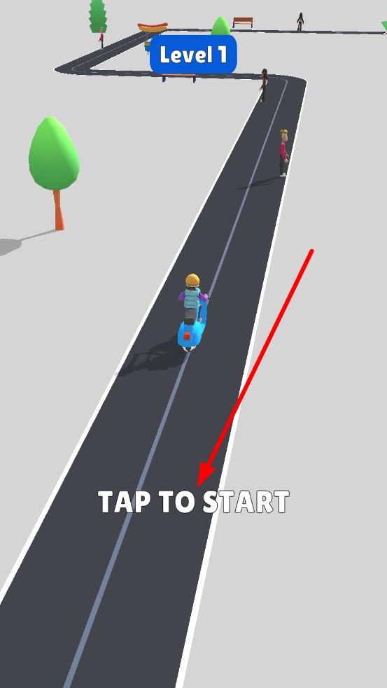 1、轻触屏幕TAP TO START,角色跨上自行车,沿道路箭头方向前行,需留意沿途出现的路人障碍。