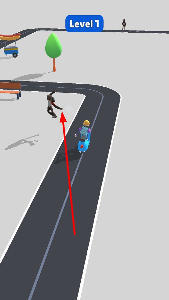 2、当路边行人进入攻击范围,点击触发踢腿动作,角色重心随踢击微晃,路人踉跄飞出,预判踢腿位置,保持骑行节奏。