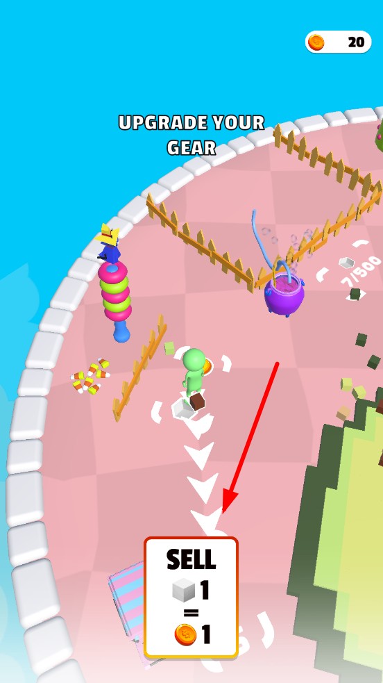 3、点击出售按钮,将多余像素兑换成金币,用金币解锁新领地、购置装饰,打造专属的方块收集帝国。