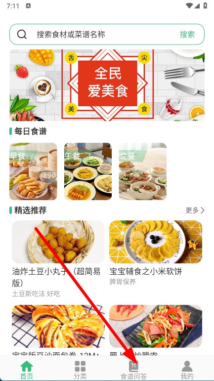2、若想查找特定分类菜谱,点击底部导航栏分类,选择感兴趣的菜品分类。