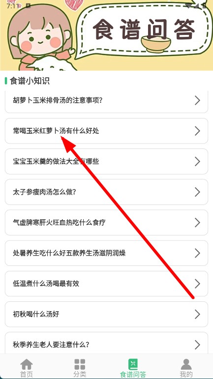 3、点击底部食谱问答,选择感兴趣的问题,查看详细解答。