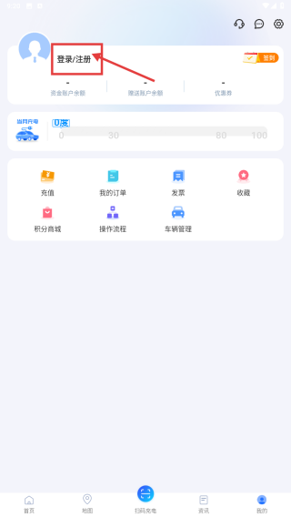 1、打开充电服务APP,点击底部我的选项,进入个人中心页面。