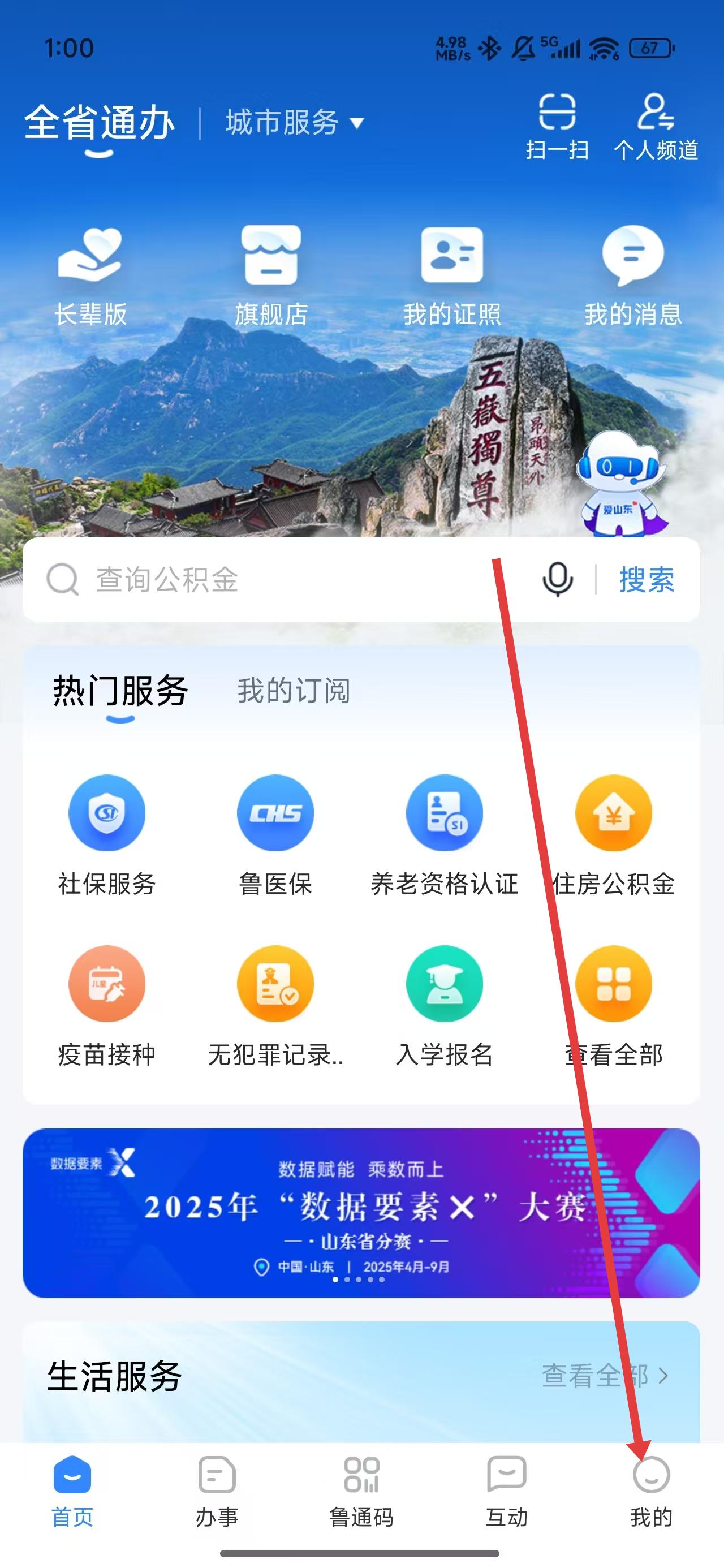 1、在爱山东app首页中,可以点击底部我的按钮,开始登录操作。