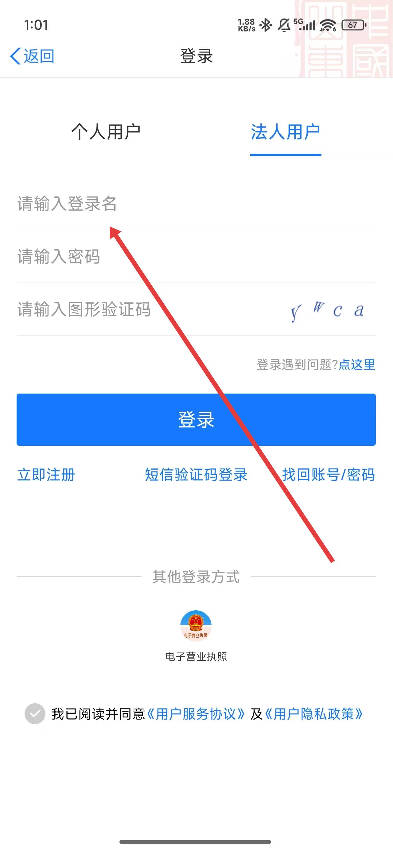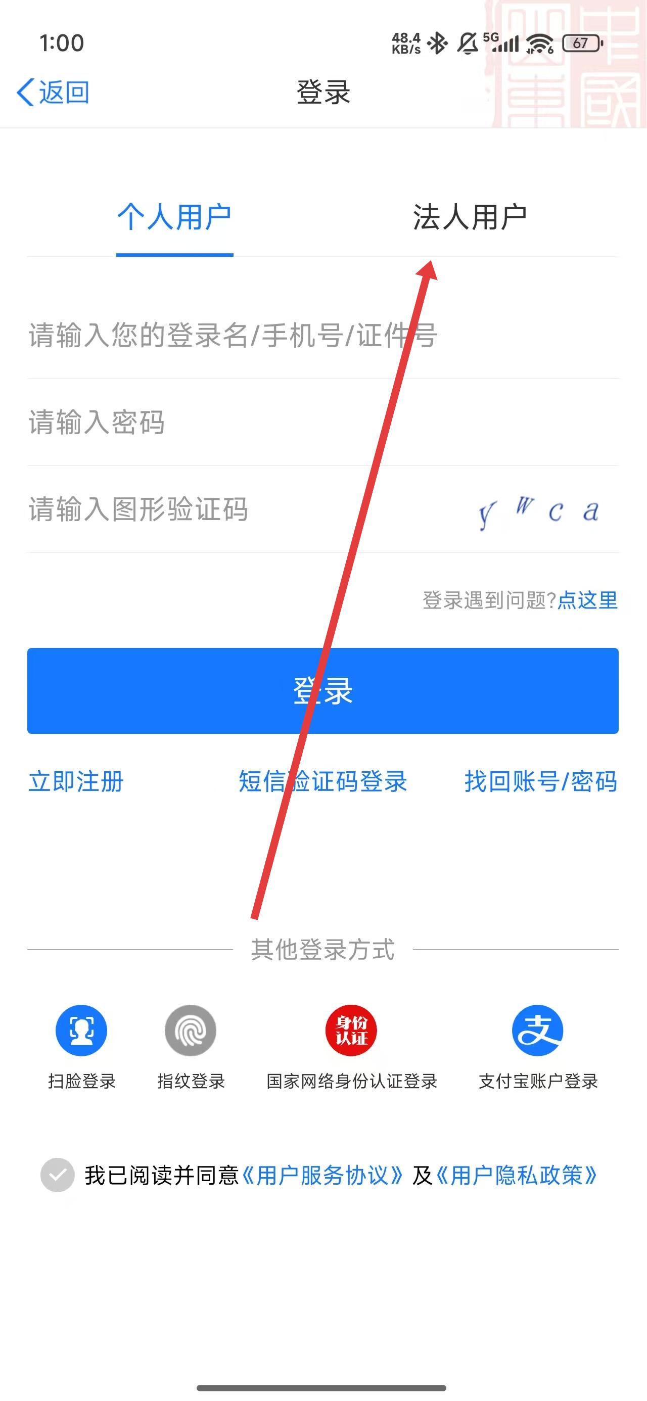 2、在登录页面中,可以点击法人用户按钮,切换登录的身份。