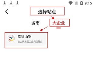 2.在“选择站点”里点击“大企业”的“幸福山钢”即可