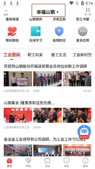 “齐鲁工惠幸福山钢”是目前省内唯一一家入驻齐鲁工惠平台的大企业APP。山钢六条保障普惠线,基本全线贯通,职工福祉在“云端”一键通达,这是集团公司“为民情怀,职工福祉”的生动实践更是利用现代信息技术。服务职工、服务基层。满足职工对幸福山钢建设新期待的重要载体。