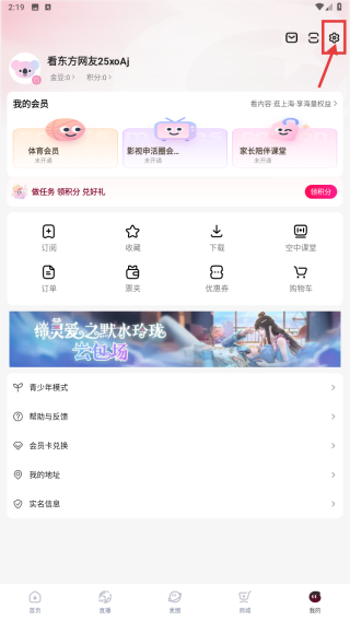 2、在个人中心,点击右上角设置图标,进入设置功能列表页。