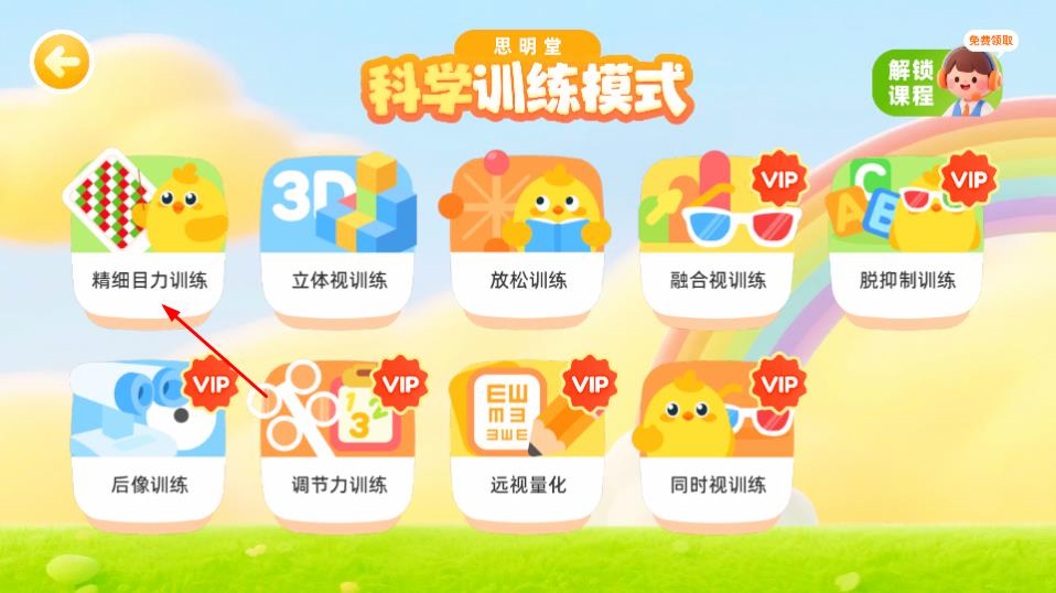 2、在科学训练模式选择页面,点击精细目力训练,进入训练游戏选择页面。