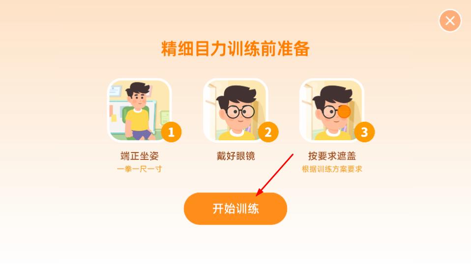 4、在训练前准备页面,做好准备后,点击开始训练,进行精细目力训练。