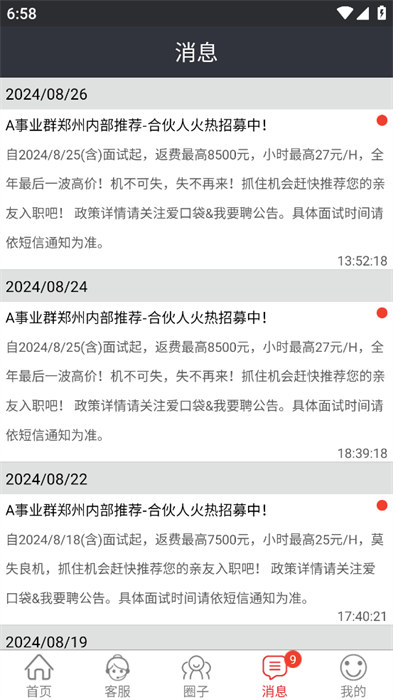 5、有消息的时候会第一时间为用户们进行推送;