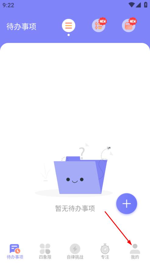 1、在指尖时光便签首页点击页面底部的我的,进入个人中心页面。