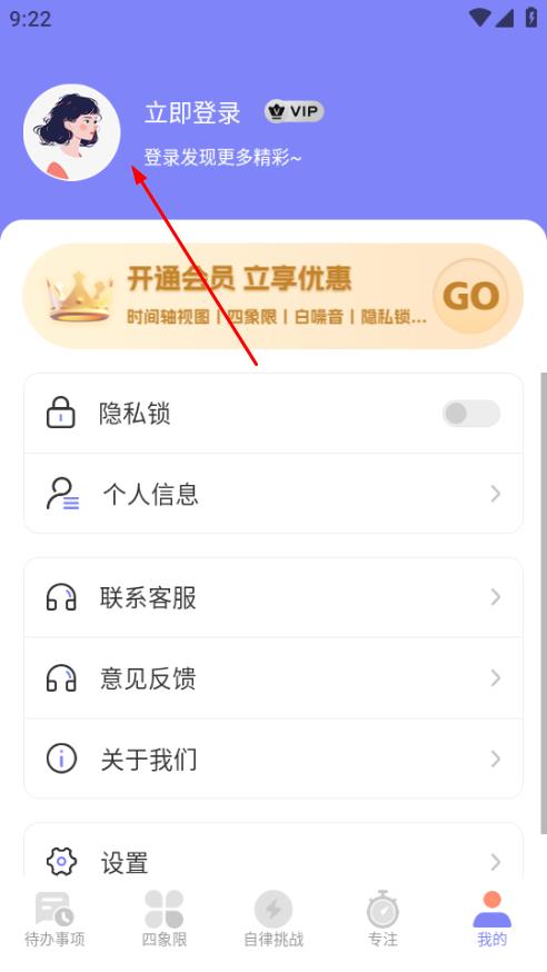 2、在个人中心页面,点击立即登录,进入登录页面。