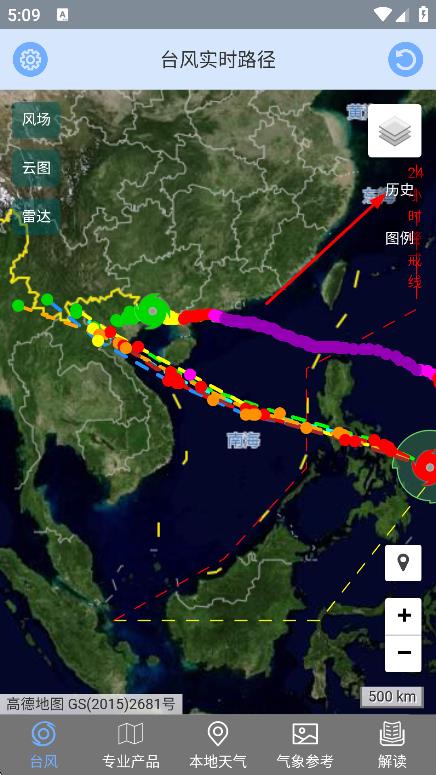 2、多维度数据呈现:支持卫星云图、风场分布、雷达图等专业数据查询,搭配普通地图与卫星云图双模式切换,直观展示台风形态与影响范围,满足不同场景查看需求。