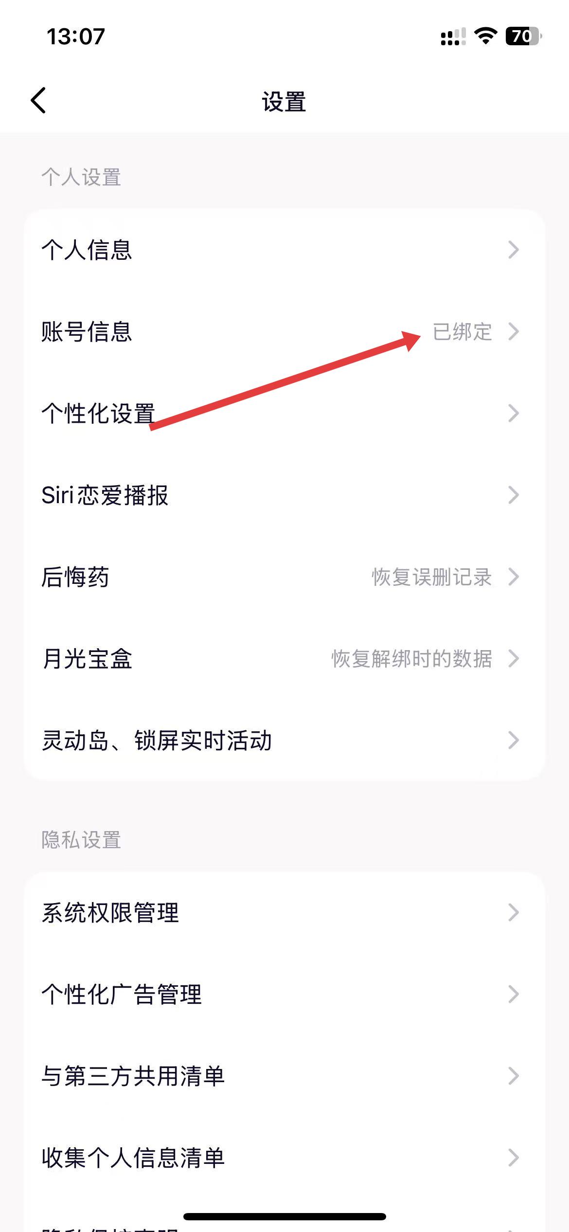 2、在页面中找到账号信息选项并点击,跳转至账号相关的设置界面。