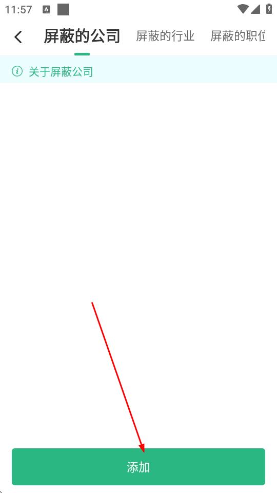 4、在屏蔽的公司页面,点击下方的添加按钮。