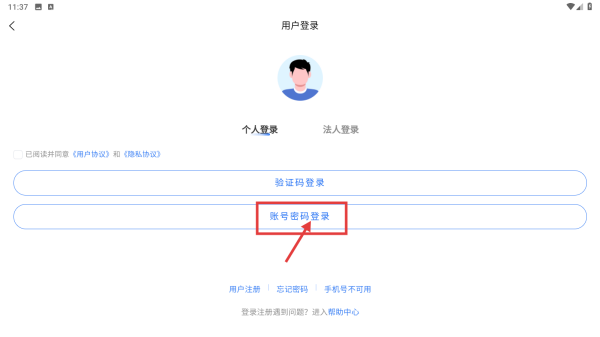 3、在登录界面,点击账号密码登录选项,切换至账号密码登录信息填写页。