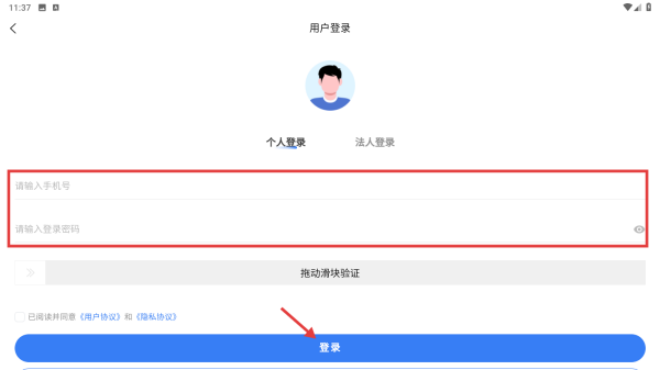 4、输入手机号和登录密码,完成滑块验证后点击登录按钮,完成账号登录。
