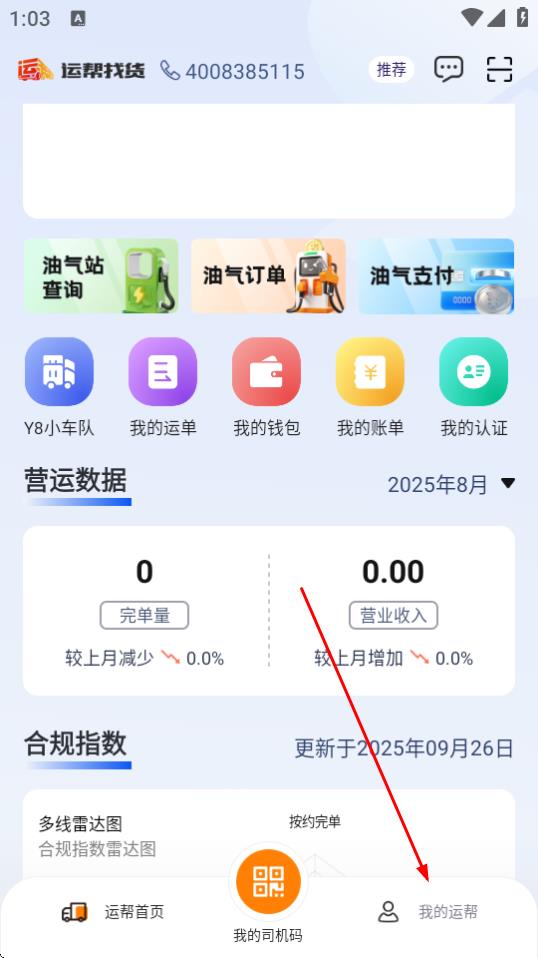 1、打开运帮找货APP,点击底部导航栏中的我的运帮。