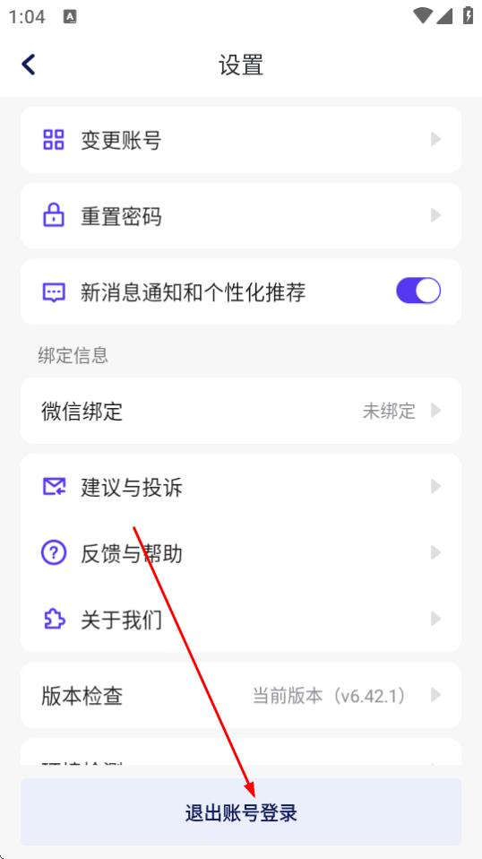 3、在设置页面中,点击退出账号登录选项。