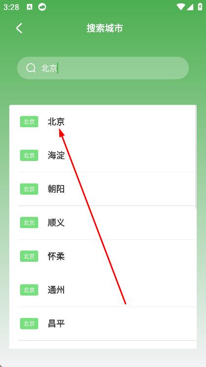 4、在搜索结果中,点击对应城市选项,完成添加。